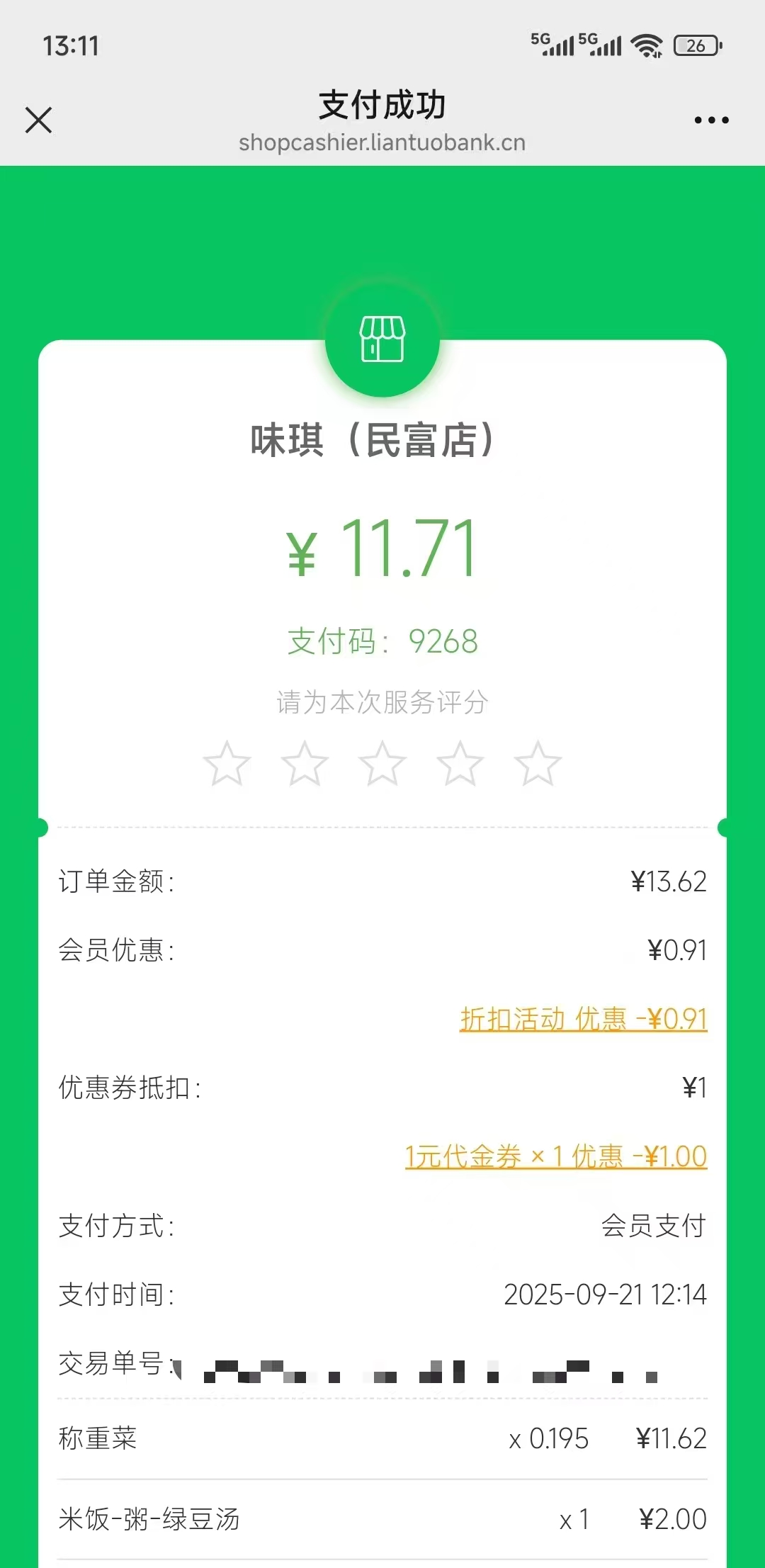 中午,我去了味琪餐厅。 点了一份 11.71 元的套餐:米饭、炒青菜、再加上一点肉。 菜色普通,但端上来的时候热气腾腾,那一刻我觉得特别踏实。